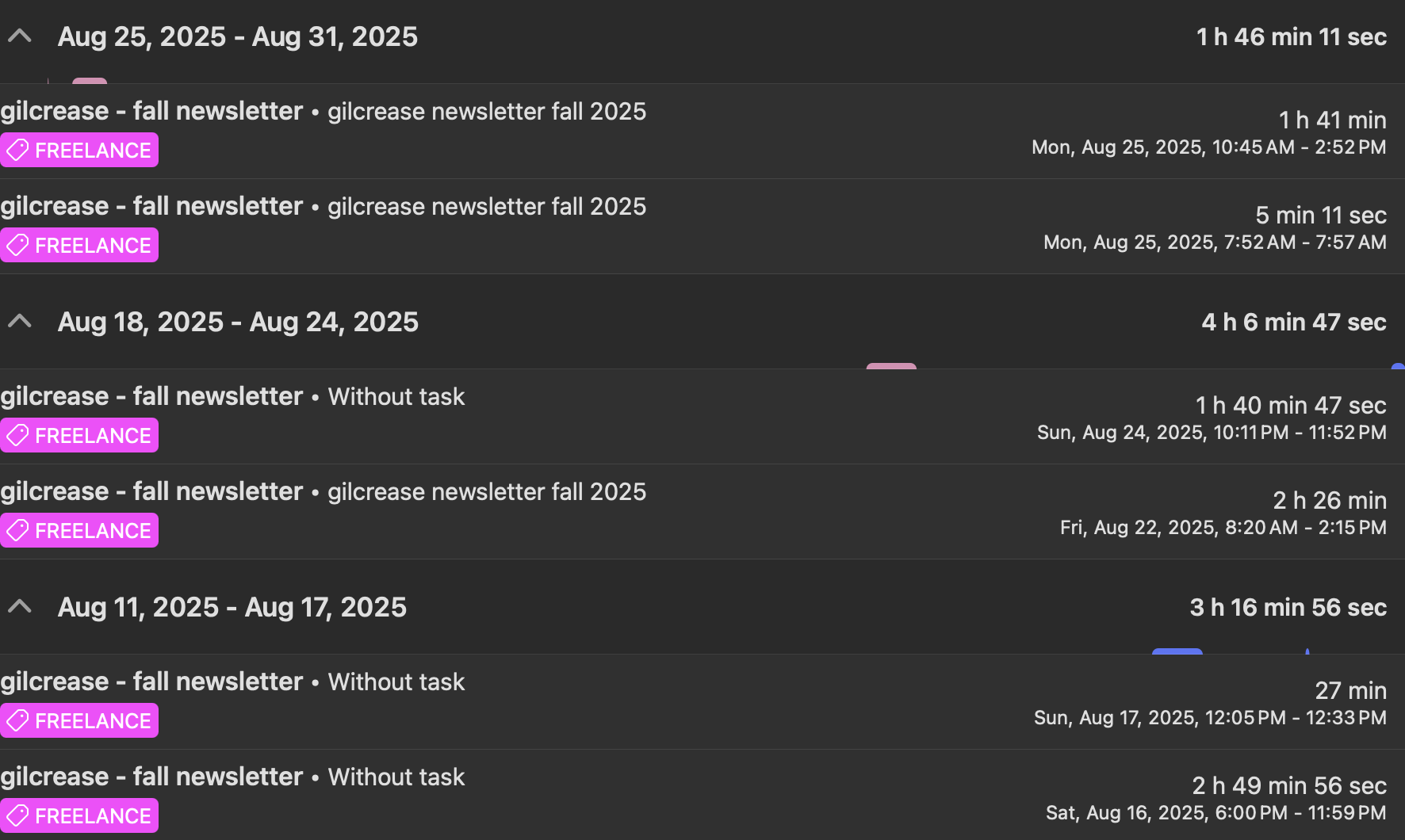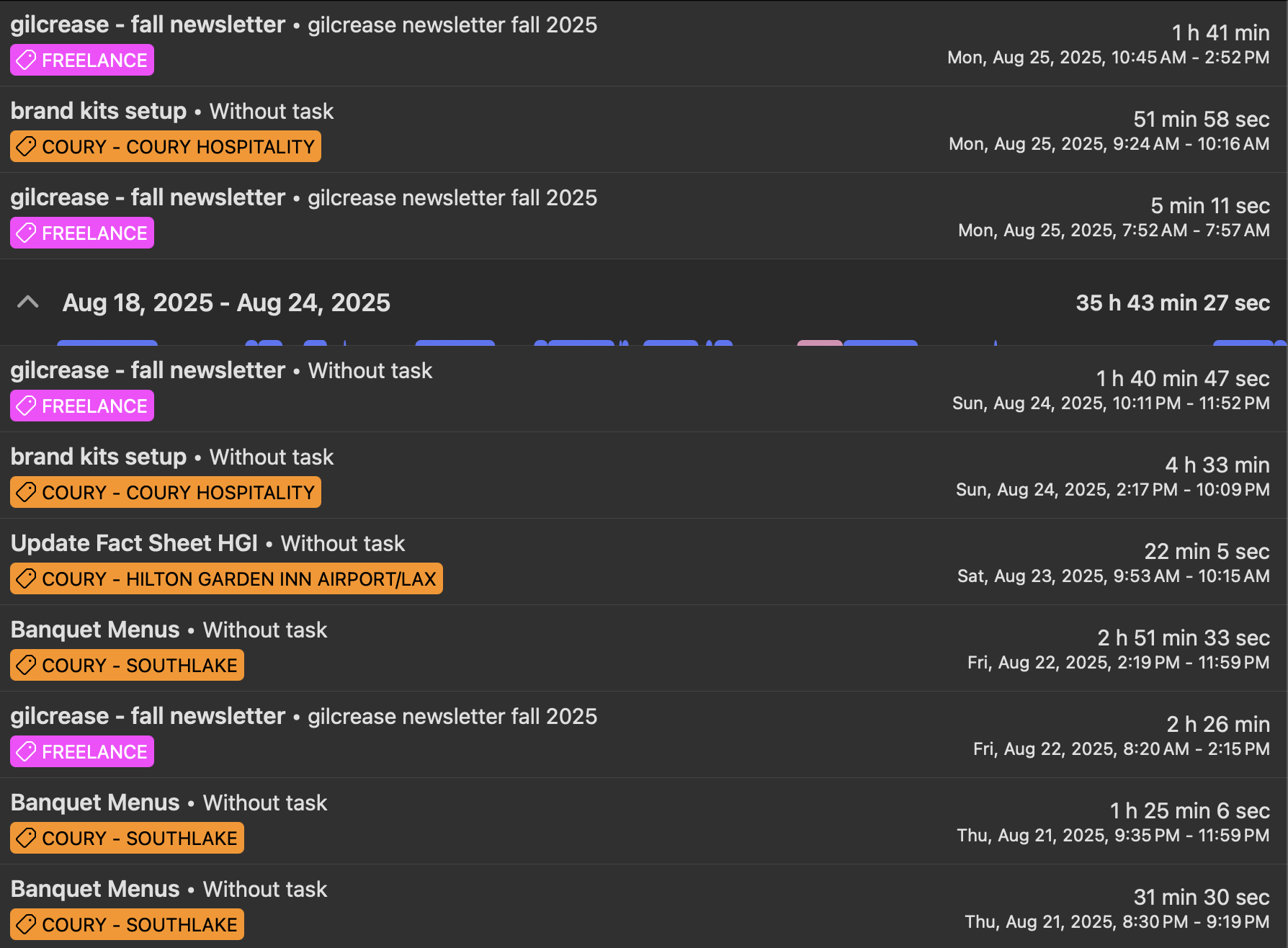 For me it is clearer to see everything in the "Time tracking" area.