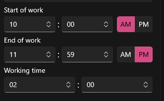 Lets say I worked from 10am to 12am. The work duration is correct: 2 hours. But the start time is 10am and the end time is 11:59 pm, midnight. I have a new working unit starting on 00:01 the next day. This would be ok, if I could edit the work units afterwards. But I can't.