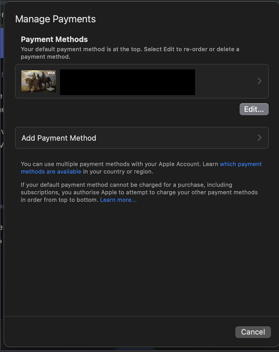 Can't purchase Pro version inside the app. When I am trying to buy the app it says "Payment information required", however I already have a card. I also can't buy it using Apple Pay on Mac.